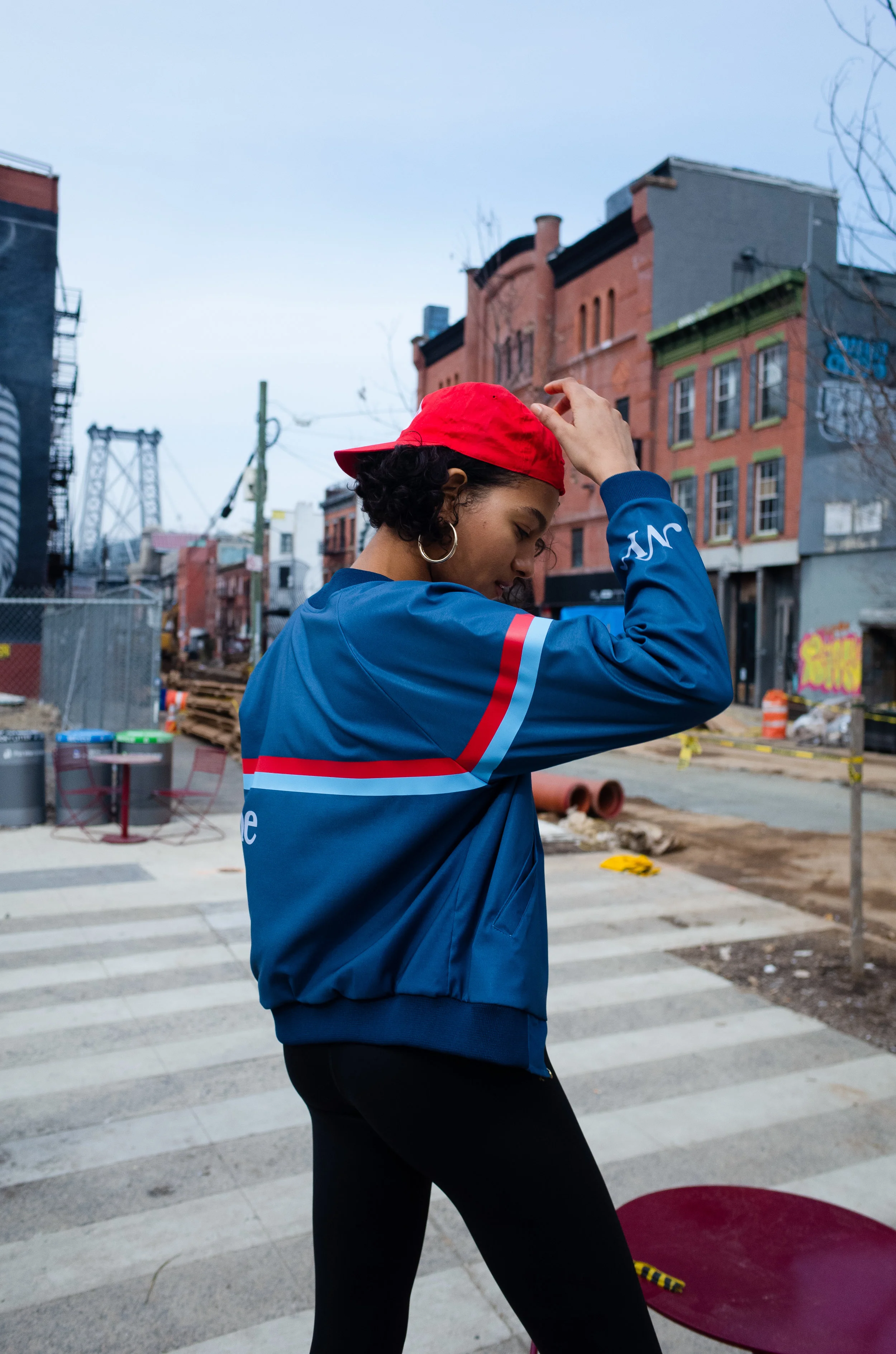 The WILL LANE Crew Jacket introduces the brand’s freshest take on tough femininity expressed through a classic sports look with a youthful twist. The jacket draws inspiration from 1970s vintage sports and collegiate jackets, using bold stripes to create geometric and color contrasting, and reimagined typography reminiscent of years gone by. The vintage styling is complemented by bright colors and bold zipper accents for that added touch of modernity.